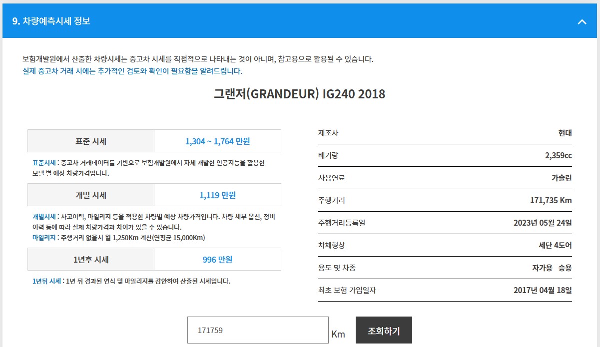- 해당물건에 대한 보험수리이력을 검색합니다.